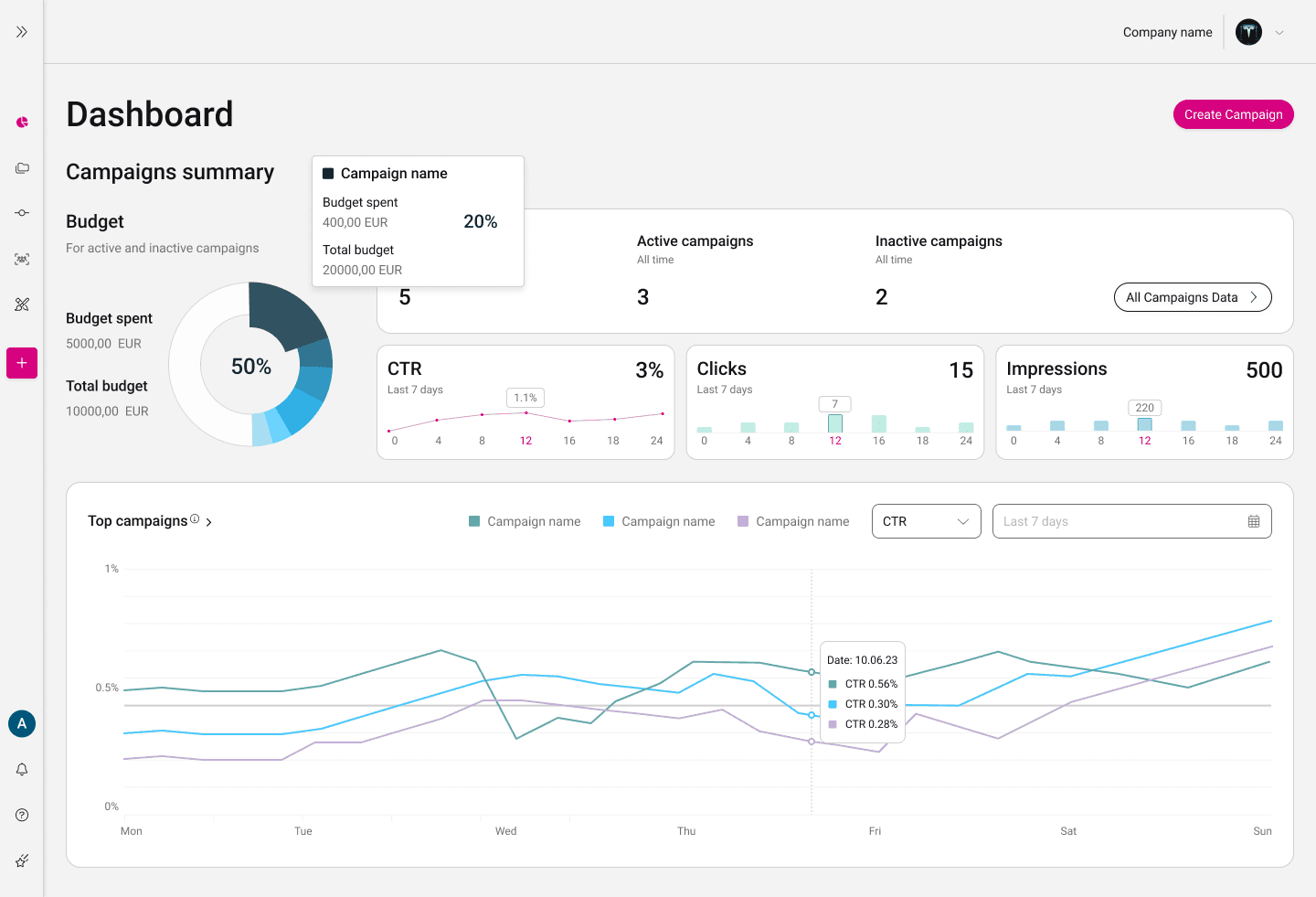 An easy and digestible overview of all the campaigns. integrating data that provides real value and help the user to make better decisions.