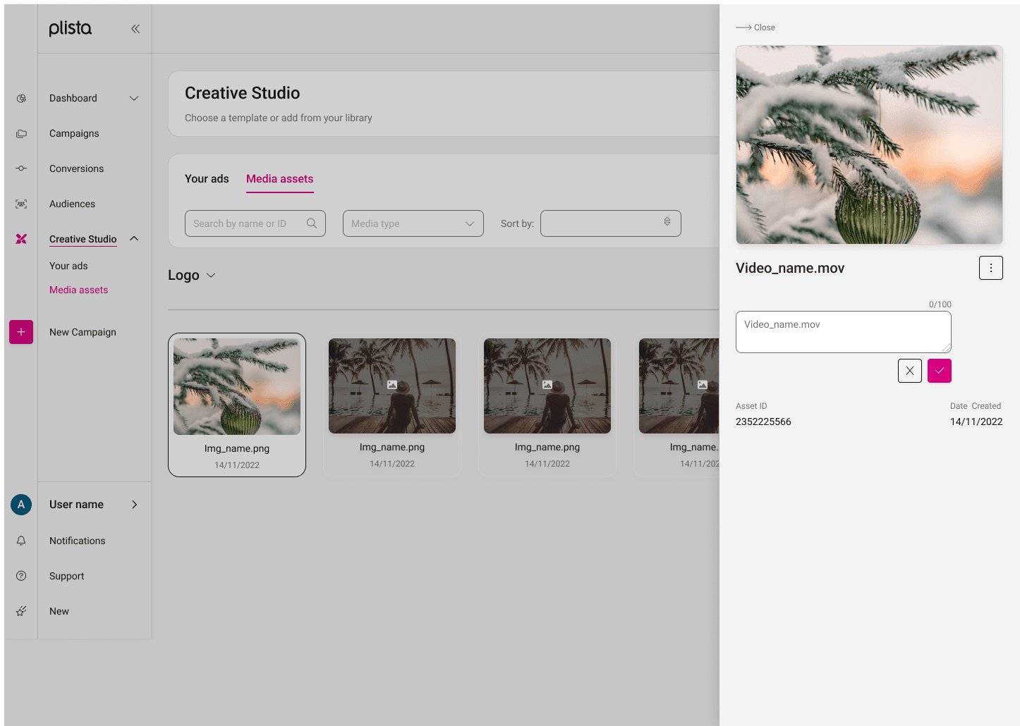 Providing a dedicated area to manage all their ads and media assets, and opens a new flow to create an ad.